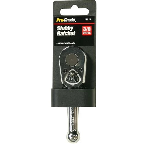 Pro-Grade 3/8 In. Dr. Stubby Ratchet 4 In. is the perfect tool for when you need a ratchet in a small space. It is made from chrome vanadium steel with fully-polished contoured handles. The 4 in. stubby oval head offers reversible 45 gear teeth. It is durable and long-lasting.