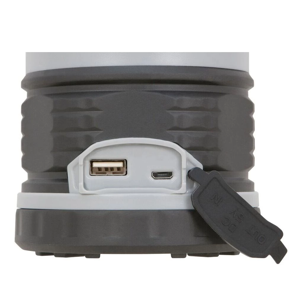 Atak Rechargeable Lantern uses licensed COB technology strip. There are 4 functions: High, Low, Red Flash, and Red SOS. This lantern has a USB & Micro USB port charging, the cord is included. It can also be used to charge smart devices including phones, tablets, etc. The lanterns housing is ABS and TPR.