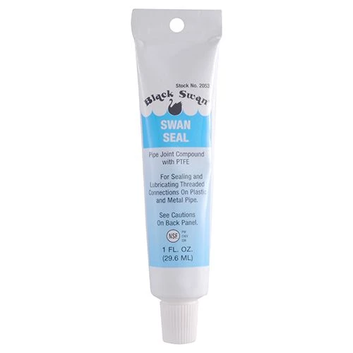 Black Swan Pipe Joint Compound with PTFE is a non hardening pipe compund that forms a film of PTFE over the threaded surface for lasting protection against leaks. It is recommended for use on ABS, PVC, CPVC, Flowguard CPVC, Blazemaster CPVC, fiberglass, nylon, polypropylene, Celcon, cycolac, polybutylene, delrin, polyethylene, zytel and all metals.