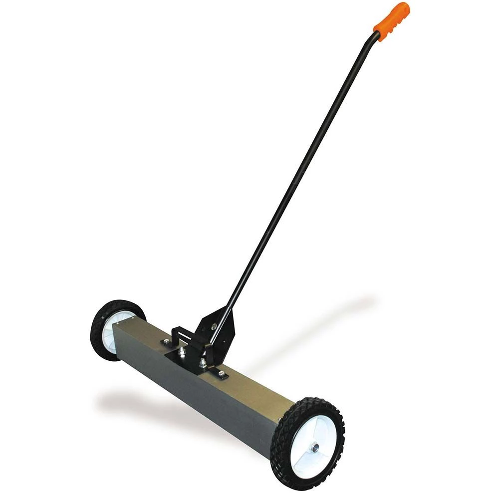 Don’t risk running over or stepping on or running over stray screws, nails or metal shavings. Use the Buffalo Tools 30 Inch Magnetic Sweeper Pickup Tool to easily pick up stray ferrous objects at the jobsite, in the garage. It can hold up to 30 pounds of metal and will work on a variety of surfaces, such as concrete, asphalt, plywood floors, and compacted ground. The 3 in. W x 4 in. H x 30 in. L sweeper deck is made of heavy duty aluminum for durability. The quick release load lever makes dumping the Magnetic Sweeper Pickup Tool painless.
