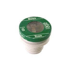 The Bussman BP/SL-30 time delay fuse is for residential motor circuits in kitchens, workshops, garages, utility rooms or any circuit with motors, relays or solenoids. The ceramic rejection base threads prevent a larger amp fuse from being used. -Volts: 125Vac -Amps: 30Amps