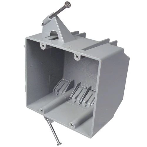 Cantex Double Gang Residential Electrical Box with Nails has 8 knockouts. The nails are at an enhanced angle for quick mounting between studs. It is suitable for masonry walls.