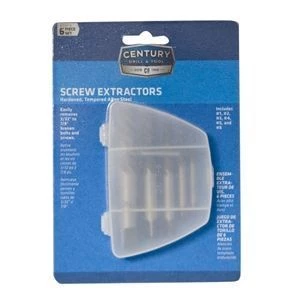 Century Drill & Tool Spiral Screw Extractor Set 6 Pc. is used for when a screw or bolt has been broken off while still in the fastening hole. These extractors easily remove 3/32 in. to 7/8 in. broken bolts and screws. They are made of hardened, tempered alloy steel.