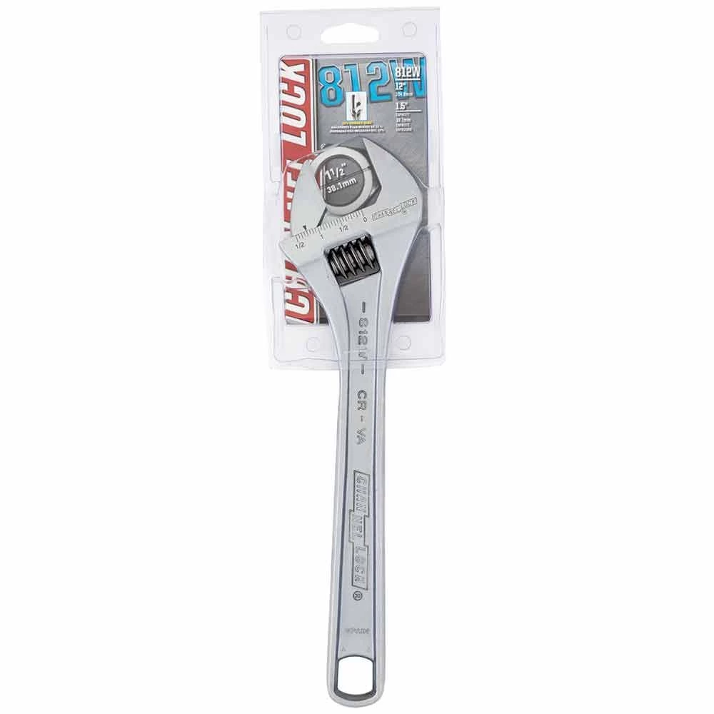 Channellock® Adjustable Wrench has longer jaws that grip better, avoiding slippage or nut round off. The measurement scales (inches on the front and metric on the reverse) are handy for sizing nuts, pipe and tube diameters. The grater jaw capacity supports larger nuts and bolts while the thinner jaws are for greater access in tight spaces. The precise jaw design grips tight the first time, every time and the 4 thread knurl and non-protruding jaws provide greater capacity; minimal head width improves performance in confined spaces.