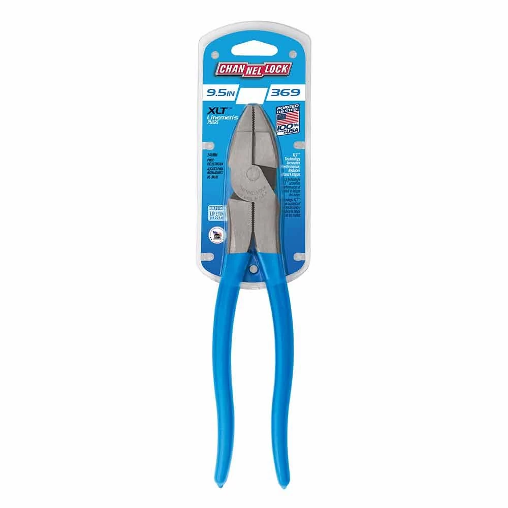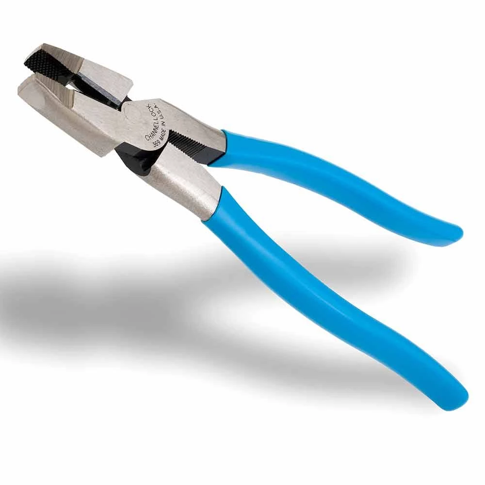 CHANNELLOCK® Round Nose Linemen's Pliers feature Xtreme Leverage Technology (XLT™) which positions the rivet closer to the cutting edge to make cutting easier than ever. State-of-the-art laser heat treating offers a strong and consistent pattern across the cutting edge, adding increased strength and longevity over traditional hardening practices. Crosshatch jaws provide maximum grip and longevity. A precision-machined knife and anvil style cutting system ensures perfect mating. CHANNELLOCK® Linemen's Pliers are made in USA and forged from high carbon U.S. steel that is specially coated for ultimate rust prevention.