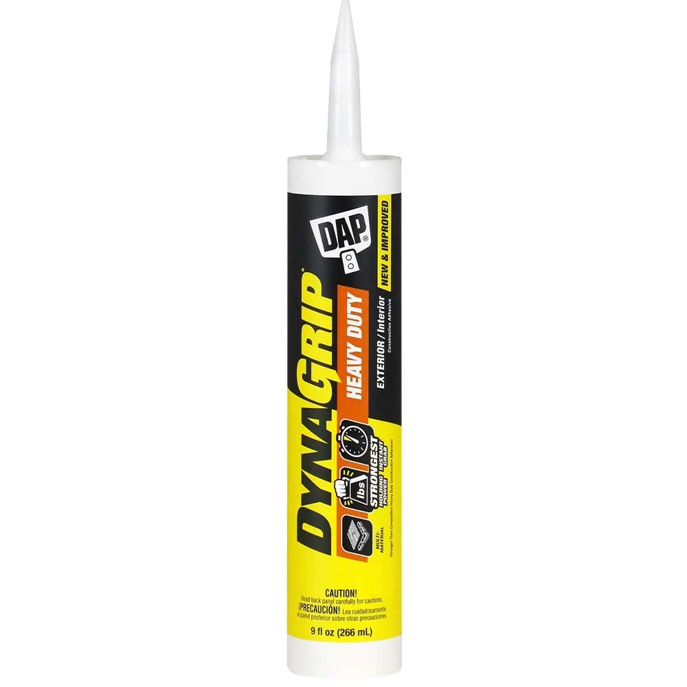 DAP® DYNAGRIP® Heavy Duty Construction Adhesive is a premium high strength adhesive for heavy interior/exterior construction and remodeling projects. DYNAGRIP® HEAVY DUTY delivers a powerful instant grab to hold the toughest vertical projects in place instantly. Featuring a weather resistance bond once fully cured, this adhesive provides a durable long-lasting bond and strong adhesion on a wide range of building materials. It has the Strongest Instant Grab* – Powerful instant grab greatly reduces nailing, bracing & clamping for larger vertical applications and Strongest Holding Power* – Powerful adhesion to tackle the toughest jobs. This adhesive provides a tenacious bond to a wide range of building materials and is repositionable up to 10 minutes.