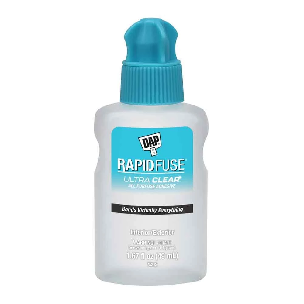 RapidFuse® Ultra Clear All Purpose Adhesive is a hybrid adhesive that creates a crystal clear bond for the clearest and cleanest results on all your projects and household repairs. RapidFuse Ultra Clear bonds virtually everything with a strong, flexible and durable bond that will not yellow as it ages. Ideal for bonding clear or translucent materials. This easy-to-use hybrid polyurethane formula is non-skin bonding, won’t foam or expand, and sets in less than 30 minutes. It forms a water-resistant bond that is perfect for indoor or outdoor use and won’t grow brittle over time resulting in long-lasting durability.