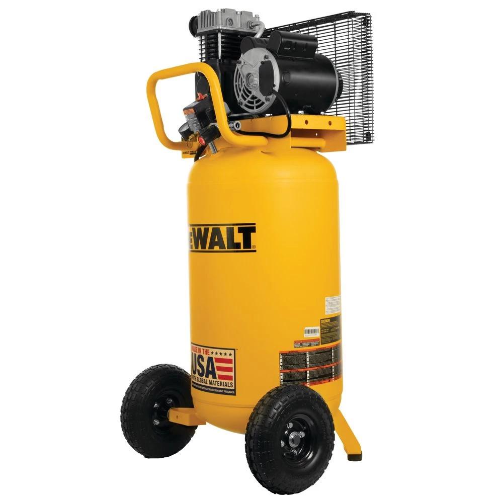 DeWalt 25 Gallon Air Compressor is a 200PSI oil lubed belt drive air compressor with industry leading 2-stage performance. It features industry leading optimum tool perfromance and the ability to operte a larger selection of air tools. The life, oil loburicated pump features a poly-v pulley and drive belt that providdes smooth operation with less vibration, an high efficiency aluminum flywheel that provides maximum air flow and lower start-up amps u to less starting inertia. The pump also has an aluminum head and valve plate maximizes heat dissipation, while the superior O-ring seals eliminates oil leaks. A high flow regulator and coupler provide maximum air flow to air tools. The 78dBA operational noise level is for a quieter work environment than direct drive oil free compressors. 10 in. heavy duty pneumatic wheels provide maximum portability around the shop or job site.