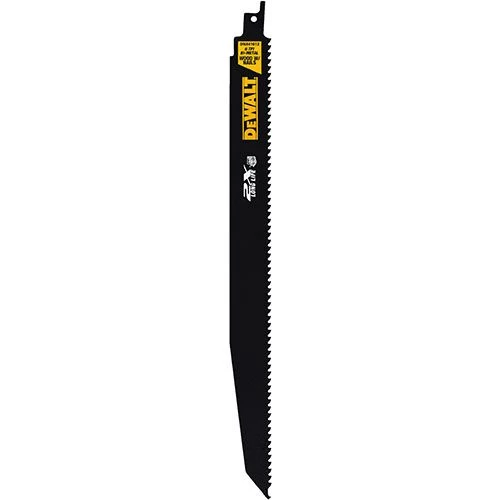 DEWALT® Reciprocating Saw Blades: 2X Wood Cutting Blades feature a taller high-speed steel strip which reduces breakage and maximizes tooth durability and life. The aggressive shank angle increases tooth contact, maintaining cutting speed as blade wears for longer blade life. A patented tooth design utilizes shaper tooth geometry for faster cut rates. These blades have a specially formulated anti-stick coating that minimizes friction and gum-up for smoother cuts.