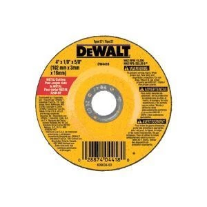 DEWALT® 1/8 Metal Cutting and Grinding 5 x 1/8 x 7/8 Metal Wheel. High performance aluminum oxide grain for long life and high material removal. High grain concentration for aggressive grinding action and smoother running wheels. Proprietary material mix ensures durable long life wheels. 3 full sheets of fiberglass for durability and safety.