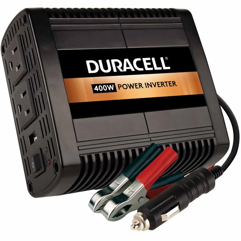 Convert vehicle power into household power with the Duracell 400 Watt High Power Inverter. Charge AC and USB devices simultaneously with 2 AC outlets and 1, 2.1 Amp USB port. The Duracell high power inverter works with smartphones, tablets, laptops, TVs, power tools and more. Perfect for camping, tailgating, the with the 400W inverter you can easily take household power on the go.