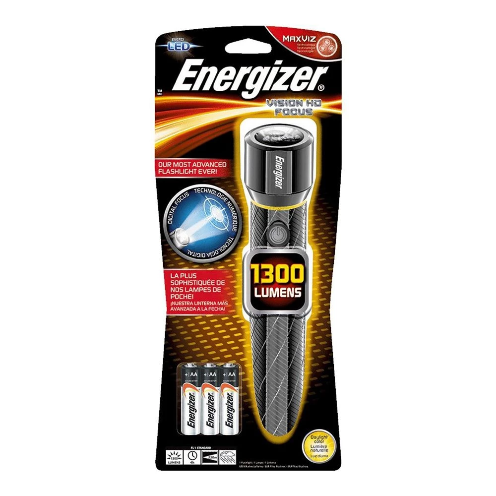 Energizer® Vision HD Performance Metal Light with Digital Focus features ultimate light control with patented digital focus technology. The one-press Digital Focus effortlessly transitions from hull spot light to full flood light. MAXVIZ™ technology enables high-definition vision. it is engineered with the latest LEDs for powerful light output, impressive runtime and natural daylight color. The LED technology is up to 4X brighter than standard LED technology. Advanced alloy construction is ideal for outdoor, work or home use.