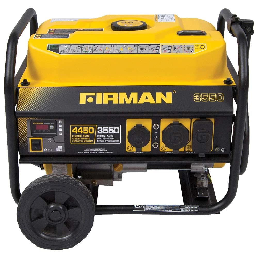 The FIRMAN P03501 is a strong 4450 starting watts and 3550 running watts generator. Our Max Pro Series 208cc engine runs cool and efficient thanks to the Phoenix Fat Head Block. The P03501 is an RV ready generator with a 4-in-1 data minder measuring Volts, Hertz, Hrs. and low oil indicator. Canada emissions certified, the P03501 runs at 67 dB equipped with a 5gal tank for a long run-time of 14hrs. Equipped with 8î wheels and a folding handle, this generator has everything you need, including a cover!