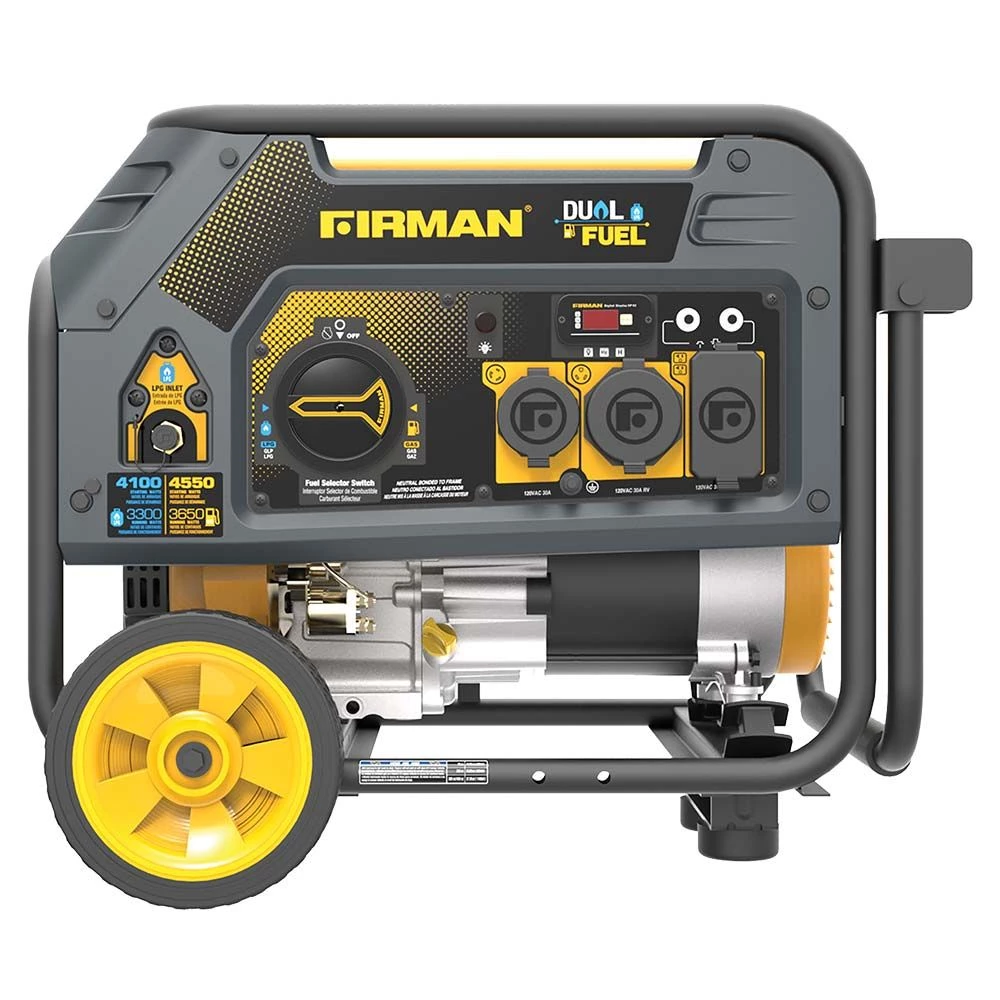 From the great outdoors to family BBQís Firman Hybrid Dual Fuel Portable Generator delivers clean fuel and efficient power. Perfect for camping, emergency power, work-site and great outdoors. This generator features 4550 starting watts and 3650 running watts. The Max Pro Series 208cc engine runs cool and efficient thanks to its Phoenix Fat Head Block. Running at 67 dB, the H03652 has a 5gal tank that will run for 14hrs and is California and Canada emissions certified. All Hybrid Series run on gas or propane, giving you flexibility. The H03651 has a 5.5ft propane hose for convenience using larger propane tanks and includes a 8î wheel-kit and folding handle. Easy information is at your fingertips with a 3-in-1 data minder measuring Hrs., Volts, and Hertz.