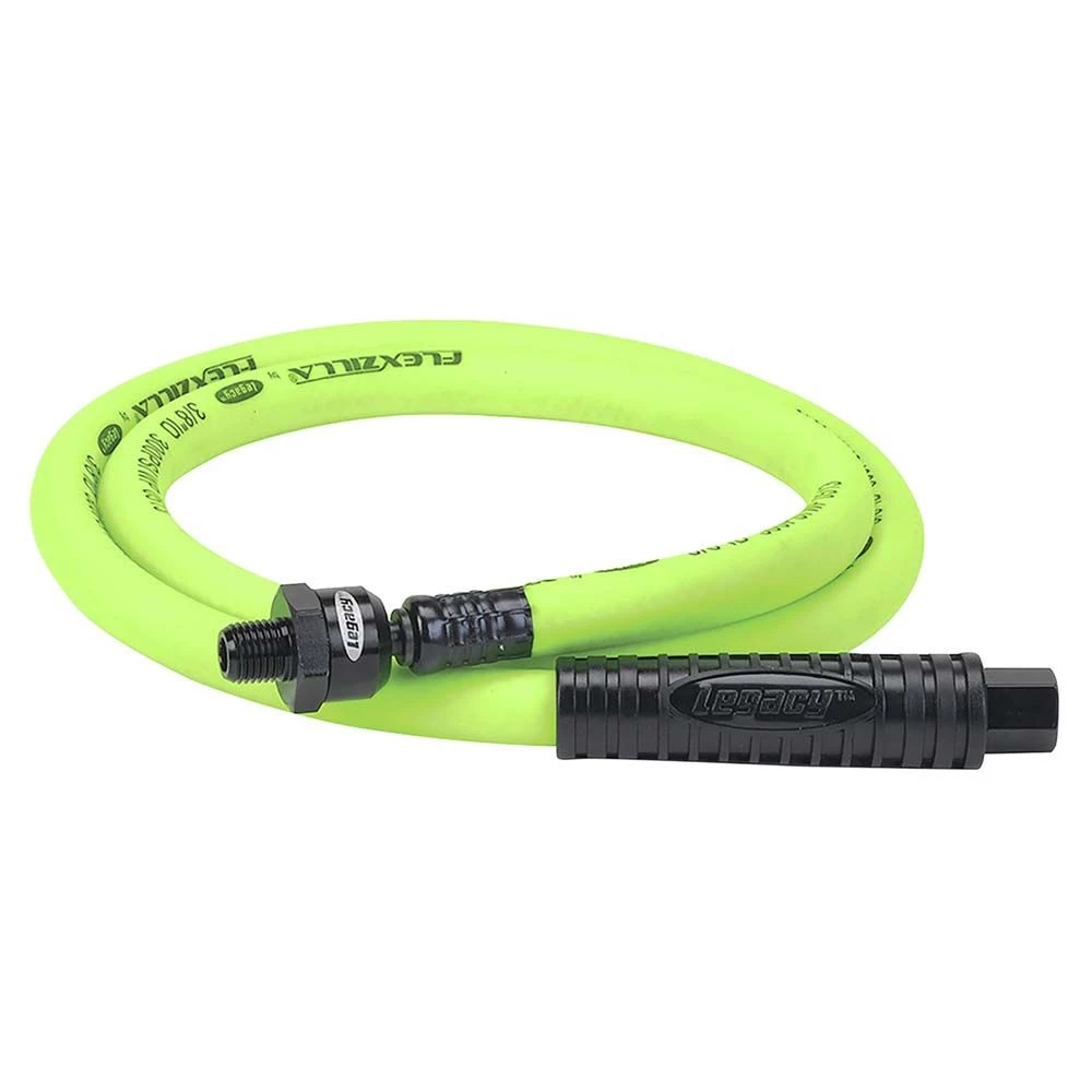 Flexzilla® Whip Hose with Ball Swivel features a Flexible Hybrid Polymer material that redefines flexibility. This engineered polymer-blend material permits use in environments where general purpose PVC and rubber hose may become too stiff. Flexzilla hose characteristics offer zero memory allowing it to lay flat. It won’t work against you during operation and coils easily after use. Flexzilla offers extreme all-weather flexibility, even in subzero conditions, and is ideal in both hot and cold environments where tight radius bends are needed. A Whip Hose will increase the longevity of hte main hose, reduces user fatigue by eliminating the weight of a coupler/plug. The ball swivel increases mobility in tight spaces.
