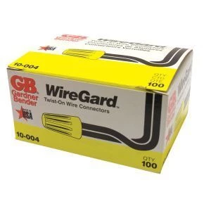 Gardner Bender WireGard Color-Coded Screw-On Wire Connectors. The industry standard twist-on connector with top quality, performance and durability. Color-coded for easy size selection. Tight, square-wire spring makes quick, secure connections for positive continuity. Tough, thermoplastic shell shields against environmental extremes. Resists chemical action from hydrocarbons, diluted acidor alkaline solutions. Flame-retardant properties resist heat distortion up to 105C (221F). High-dielectric shell features deep skirt design to prevent exposure of bare wire. Copper-to-copper connections only.