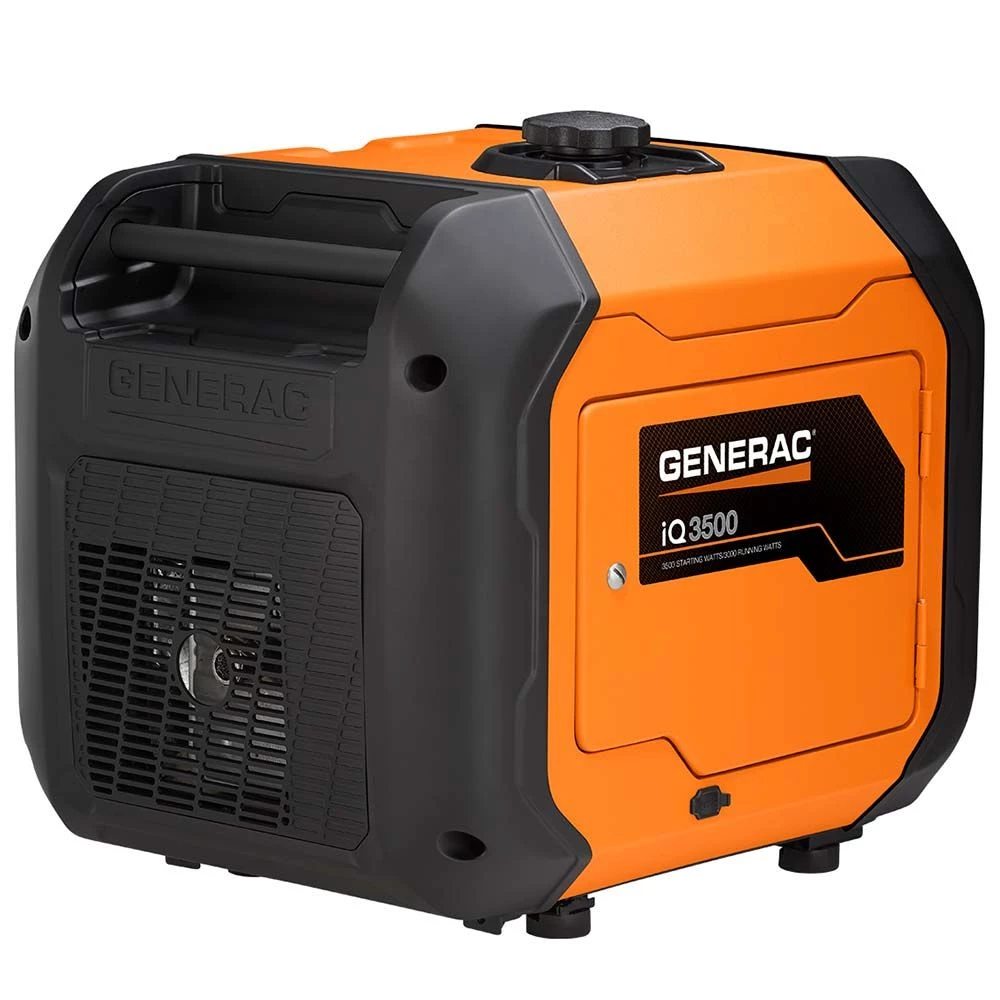 The Generac iQ3500 Portable Inverter Generator lets you bring power wherever you go – from tailgating parties to camping trips, the jobsite and beyond. The durable, yet lightweight design is specifically engineered for easy portability. The intuitive PowerDial™ integrates the start, run and stop functions into one simple-to-use dial, along with Electric Start (battery included) capability, all conveniently located for quicker startup. Select from two engine speeds, depending on your need, to significantly reduce noise and fuel consumption, or to maximize power response. Inverter generators utilize a different type of alternator than standard generators to generate AC power. POWERRUSH™ ADVANCED TECHNOLOGY – Delivers over 50% more starting capacity allowing you to do more with less* (*Increases electrical current upon demand; above rated output when starting electric motors.). Durable steel enclosure, clean inverter power and easy portability make this the ideal generator for jobsites or recreational activities. It features Digital Smart LCD- Digital Wattage Meter, Run Time Remaining Display, Generator Status, Hour Meter and Fuel Level. The 30A twist lock outlet allows you to harness the full power of the generator. USB ports allow you to charge mobile devices including smartphones and tablets. Economy mode reduces noise and fuel consumption. Parallel-Ready let you connect two iQ3500 inverter generators for twice the power (Parallel Kit #7668 sold separately); The end result is a portable generator with reduced weight and size and power that is ultra-clean and capable of safely powering sensitive electronics and tools.