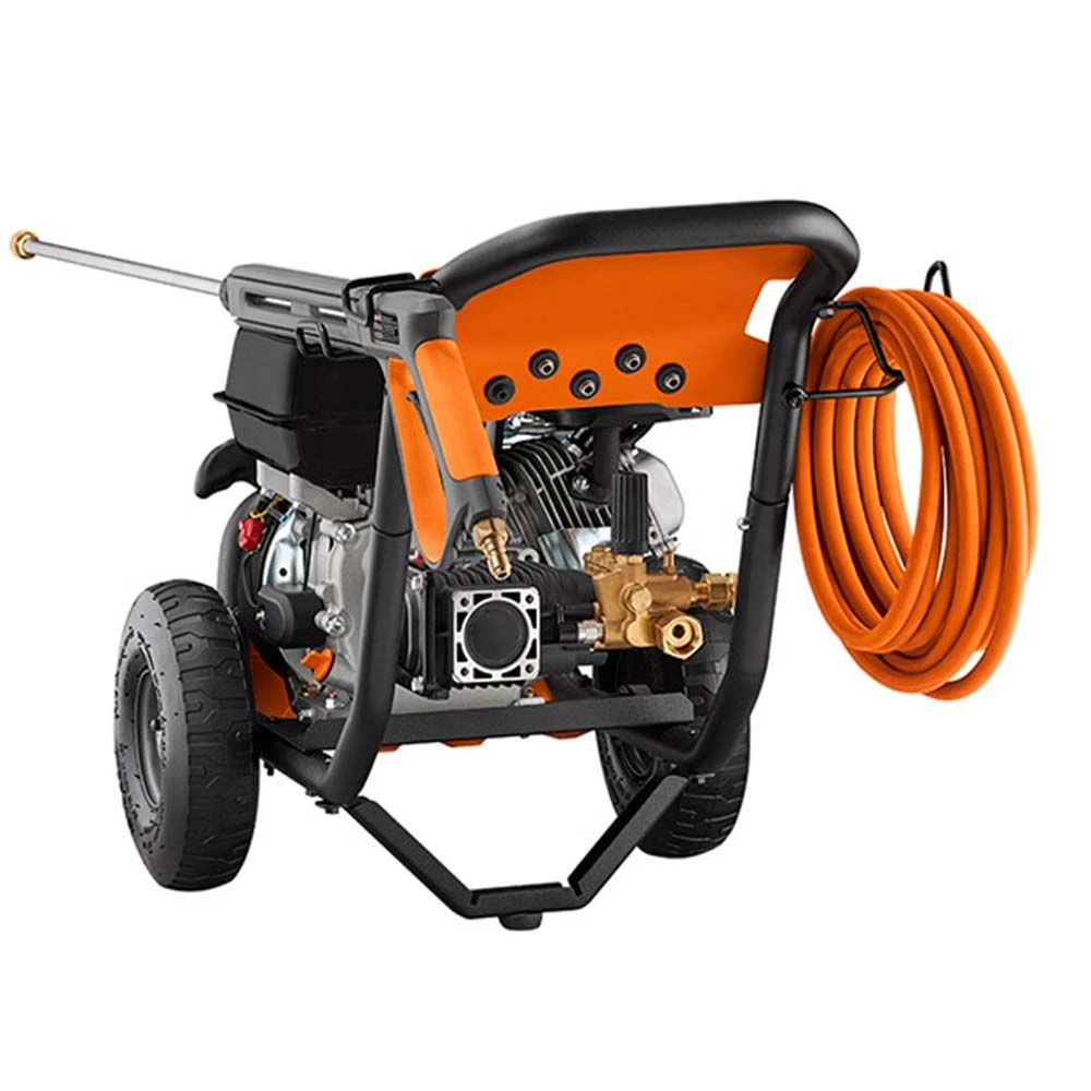 Generac Pressure Washer 3600 PSI is a rugged pressure washer that combines professional-grade features and user-friendly design. It’s a breeze to set up, easy to maneuver and won’t let you down. This pressure washer features a Pro-Grade Ergonomic spray gun with cushion grip handle and easy-to-pull trigger that reduces fatigue & improves comfort, and 5 Quick-Change Nozzle Tips 0, 25, 25, 40 & soap. The powerful Generac 212cc OHV Engine delivers maximum cleaning performance and reliability. Oversized pneumatic wheels makes easy to handle rugged terrain. The durable 1-1/4 in. steel frame protects the engine & pump. The Heavy Duty AR Triplex Pump lasts up to 4x longer than axial pumps, Flexible High-Pressure Hose with quick-change connectors make hose connections a snap. The 30 foot flex hose is kink resistant and no-marring.