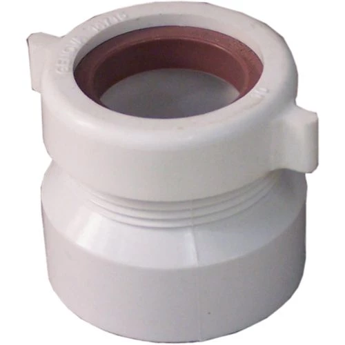 Genova Sch. 40 PVC-DWV Female Trap Adapter 1-1/2 In. x 1-1/4 In. is utilized to adapt PVC pipe to tubular traps at the wall or floor. It utilizes a special washer which seals to either 1-1/2 in. or 1-1/4 in. tubular products, reducing the number of SKUs needed in inventory. This fitting solvent welds over a 1 in. DWV pipe.