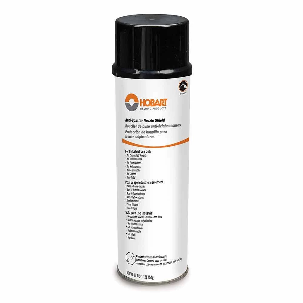 Hobart Mig Anti Spatter Spray 16 Oz. prevents adhesion of weld spatter to MIG nozzle and weld surface.