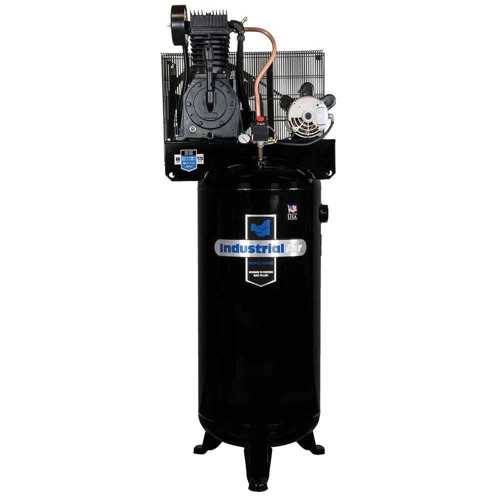 Industrial Air 5 HP 60-Gallon Two Stage oil-lube air compressor is designed for the heavy-duty professional user. Featuring a heavy-duty 5 HP tops motor, (Thermal overload protection system) protecting the motor from voltage fluctuations. Along with the patented pump and Piston design that provide a cooler running machine while maintaining consistent compression efficiency, it has 175 maximum psi to operate a wide range of tools while maintaining longer run times. It also features patented deep-grove directional and asymmetrical cooling Fins and patented cast-iron flywheel design with large extended Fins for improved cooling and low-pump RPM. Industrial Air compressors are jobsite tough, and built for the professional.