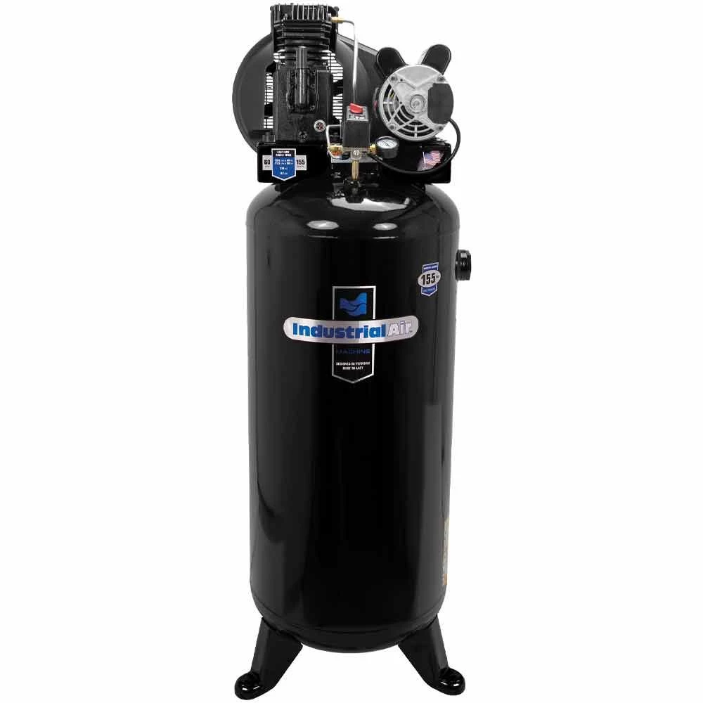 Industrial Air 60 Gal. Air Compressor operates with a heavy-duty, 240V induction motor for maximum performance and efficiency. The large capacity, 60-gallon air receiver provides more air for longer run time on air tools such as ratchets, impacts, spray guns, hammers, and more. The Industrial Air 60 Gal. air compressor has a 155 Max PSI and delivers 11.5 CFM at 90 PSI for optimum tool performance.