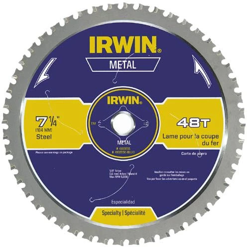 Irwin Metal Cutting Saw Blade is a ferrous steel blade that features laser cut anti-vibration vents and anti-kickback tooth shoulder. It is a laser cut blade.