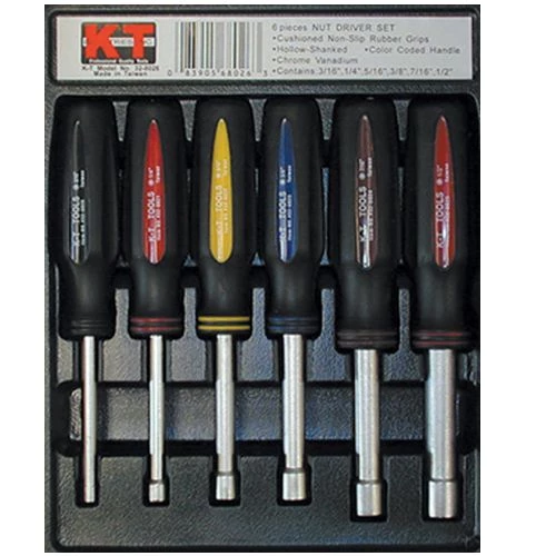 K-T Industries 6 Pc. Professional Nutdriver Set features cushioned non-slip large rubber grips that allow for better grip, more control and maximum turning power.