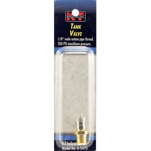 KT Industries Tank Valve has a 1/8 in. male nation pipe thread and a maximum pressure of 200 PSI.