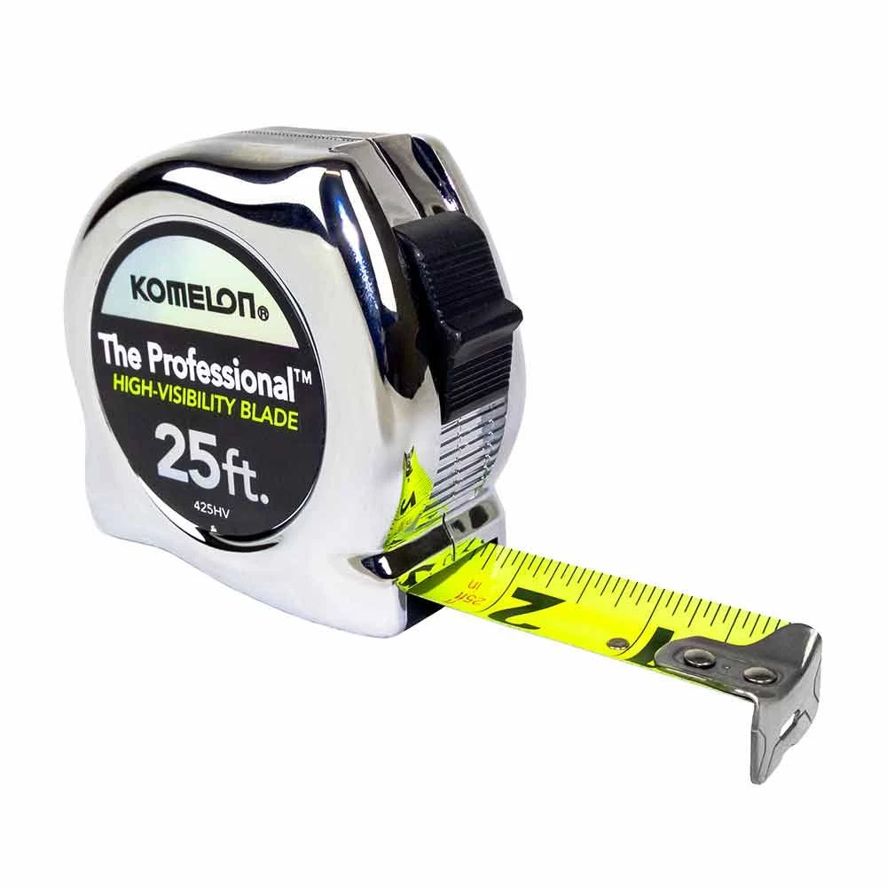 Komelon The Professional High-Visibility Tape Measure features an ergonomically designed chrome-plated case and a nylon-coated high-visibility blade. The slide lock holds the blade in place. You will see and feel the quality when using this professional tape measure.#html-body [data-pb-style="6216044C17604"]{justify-content: flex-start; display: flex; flex-direction: column; background-position: left top; background-size: cover; background-repeat: no-repeat; background-attachment: scroll; border-style: none; border-width: 1px; border-radius: 0px; margin: 0px 0px 10px; padding: 10px;}#html-body [data-pb-style="6216044C17625"]{border-style: none; border-width: 1px; border-radius: 0px; margin: 0px; padding: 0px;}