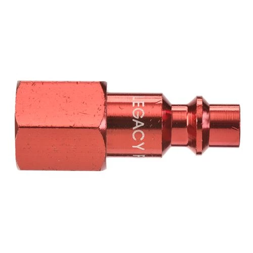 ColorConnex Industrial Series Type D Body Plug 1/4 In. FNPT 2 Pk. is red in color indicating its use for industrial style fittings. ColorConnex patented color code system allows for easy, color-to-color matching of couplers and plugs among the standard pneumatic interchanges.