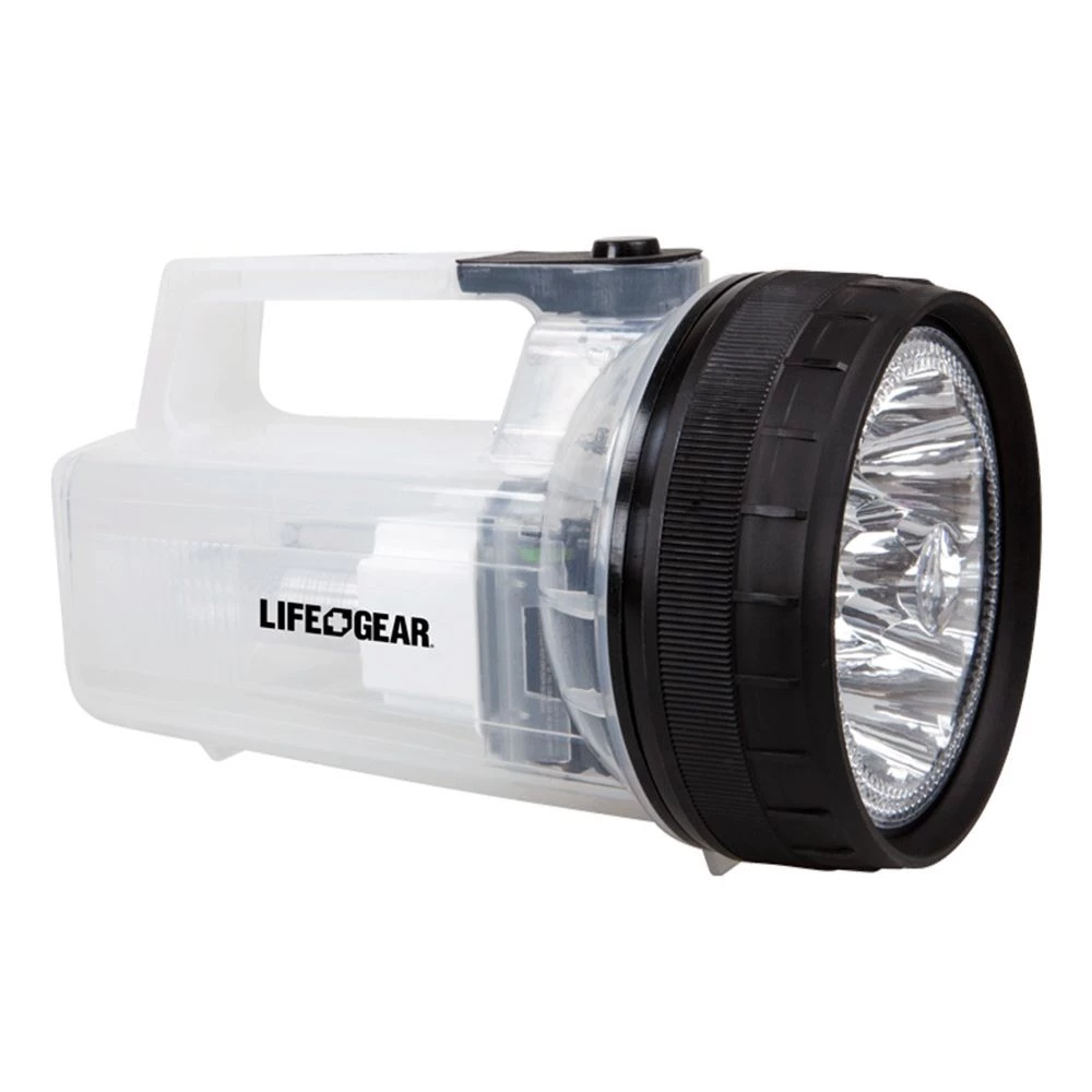 Life + Gear AR-Tech Spotlight + Lantern is an 80 lumen spotlight, lantern, and emergency flasher all in one. Settings include spotlight, lantern low, lantern high, spotlight plus flasher, spotlight plus red glow, red glow, and safety flasher. Advanced Reflective Technology (AR-Tech) allows better area lighting efficiency for longer periods of time with 360° lighting. In addition, this light is water and drop resistant. When the AR-Tech Spotlight + Lantern is dropped in water, it will float and flash red, making it easy to find. With the additional safety flasher with 300 hours of run time, you can be seen while walking or signal during an emergency.