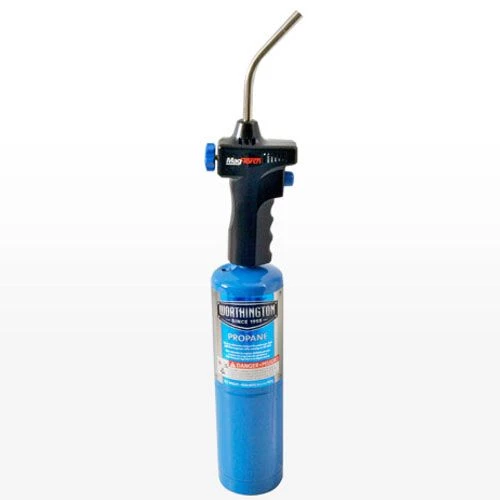 Mag-Torch Regulated Self-Lighting Propane Torch Kit features a stainless steel burn tube for strength and an ergonomic handle provides comfort and durability. The regulated valve delivers the highest quality and consistent triple point flame while operating the torch at any angle. The fuel control knob provides control and economy. There is an auto igniter for instant flame, regulator valve for consistent gas flow and stainless steel burner tube for strength.