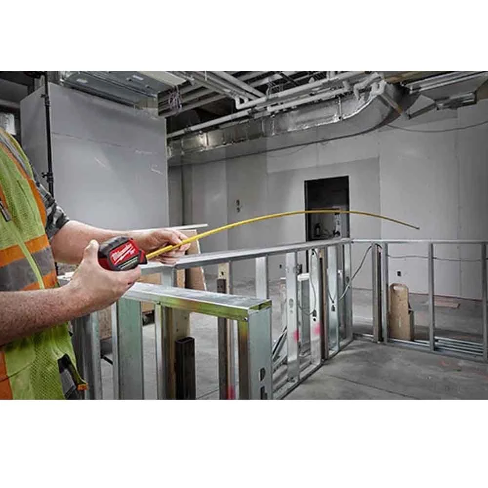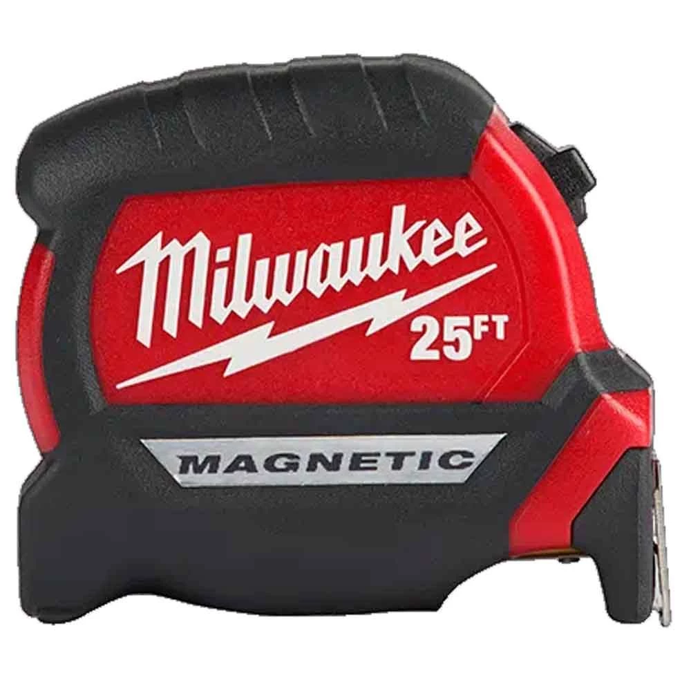 Milwaukee® Compact Wide Blade Magnetic Tape Measure 25 Ft. has up to 15 ft. of reach allowing you to quickly take measurements. The tape is wear and impact-resistant with nylon blade protection and an additional anti-tear coating on the first 6 in. of the blade, reducing tape tear. Built to withstand the jobsite, the compact measuring tapes are constructed with a 5-point reinforced frame for impact resistance. It has 2-sided printing for easy reading and a wire form belt clip that reduces pocket tearing. The magnet holds to EMT and steel studs. A finger stop delivers tape retraction control. It is lanyard-ready for quick and easy tethering.