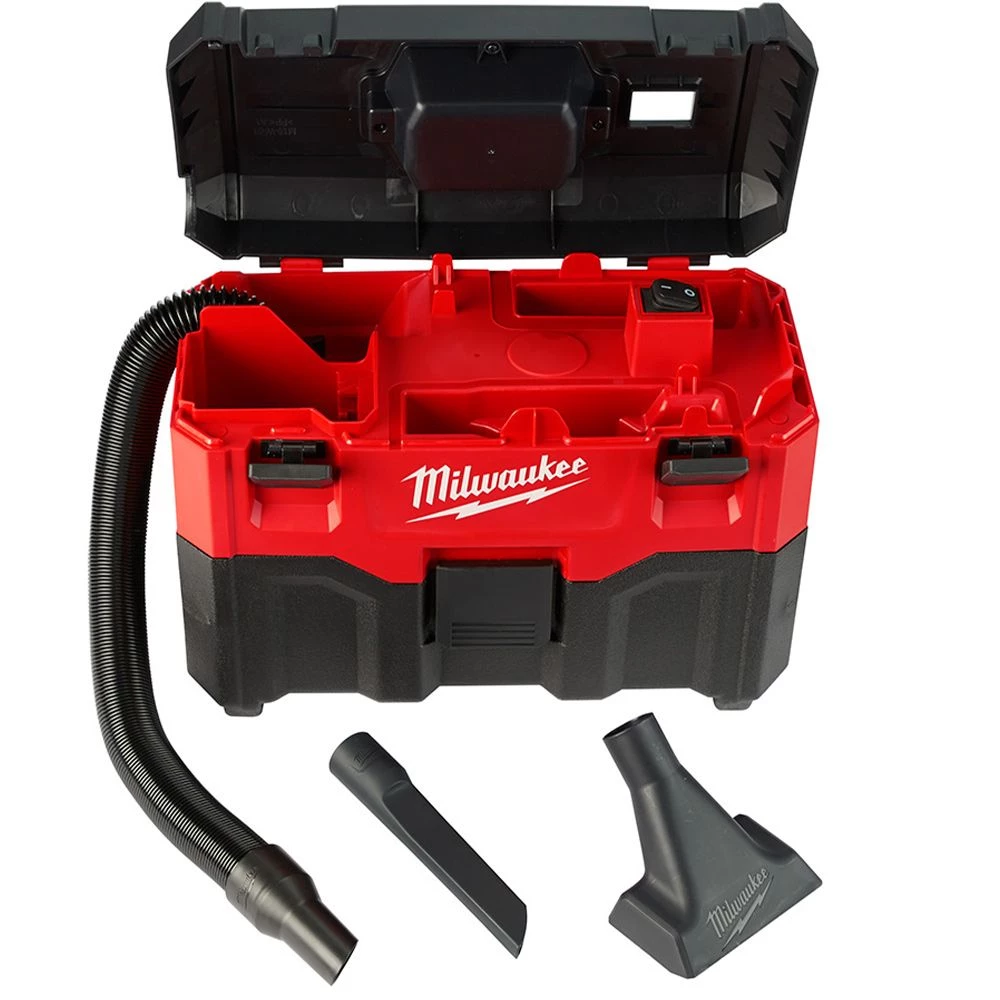 M18 Cordless 2 Gal. Wet/Dry Vacuum provides users with a Powerful and Portable Wet/Dry Clean-up tool. A high performance motor creates powerful suction for both wet and dry applications. The Milwaukee M18 Cordless 2 Gal. Wet/Dry Vacuum has a stackable design and organized on-board storage that keeps all of the attachments inside the unit for convenient transport and storage