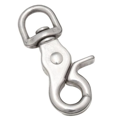 National 3161BC Swivel Eye Trigger Snap is designed to use with rope, chain, strap, animal leashes and other home, farm, and recreational applications. The swivel eye eliminates tangling. This is the snap of choice for horse reigns. Excellent for marine and other outdoor applications. Protected with corrosion-resistant WeatherGuard™ finish. When subjected to 312 hours of salt fog spray testing (BHMA A138.18), zinc-plated hardware showed severe corrosion while hardware with WeatherGuard™ protection withstood these harsh conditions with very little deterioration.
