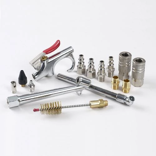 Powermate Air Compressor Accessory Kit 15 Pc. is a handy way to get the most out of your air compressor. It is perfect for use when tackling simple inflation and cleaning projects. This kit includes a rubber-tipped blow gun, high-pressure nozzle and safety nozzle, dual tire chuck, pencil-type air gauge, power wire brush, (2) quick couplers, (2) male connectors, (2) female connectors and (2) universal adapters.