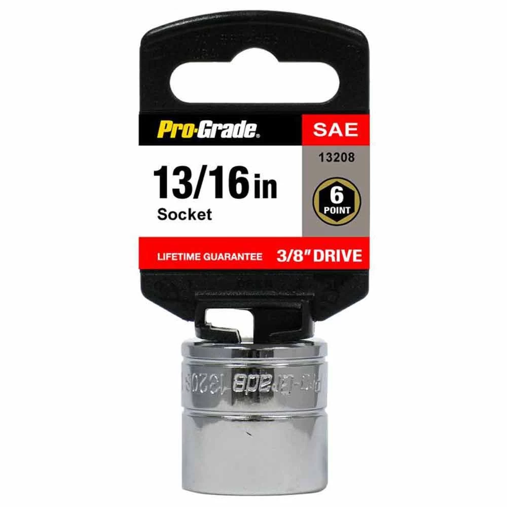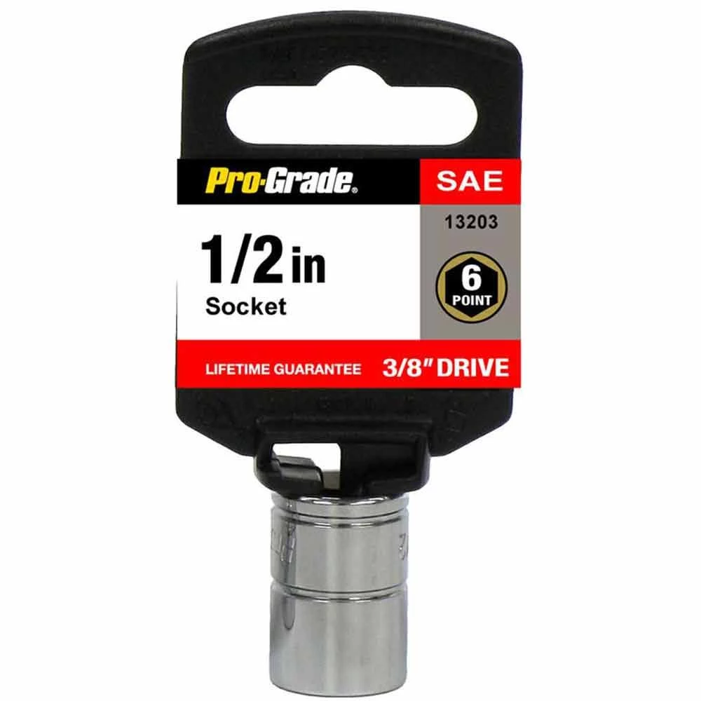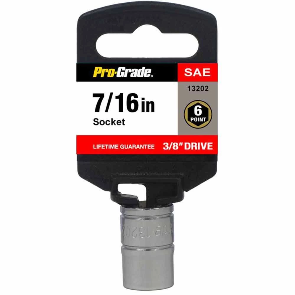 The Pro-Grade 3/8 in. Drive 6 PT Socket is made from drop forged, hardened chrome vanadium steel for strength and durability. This is the perfect addition to your socket set.