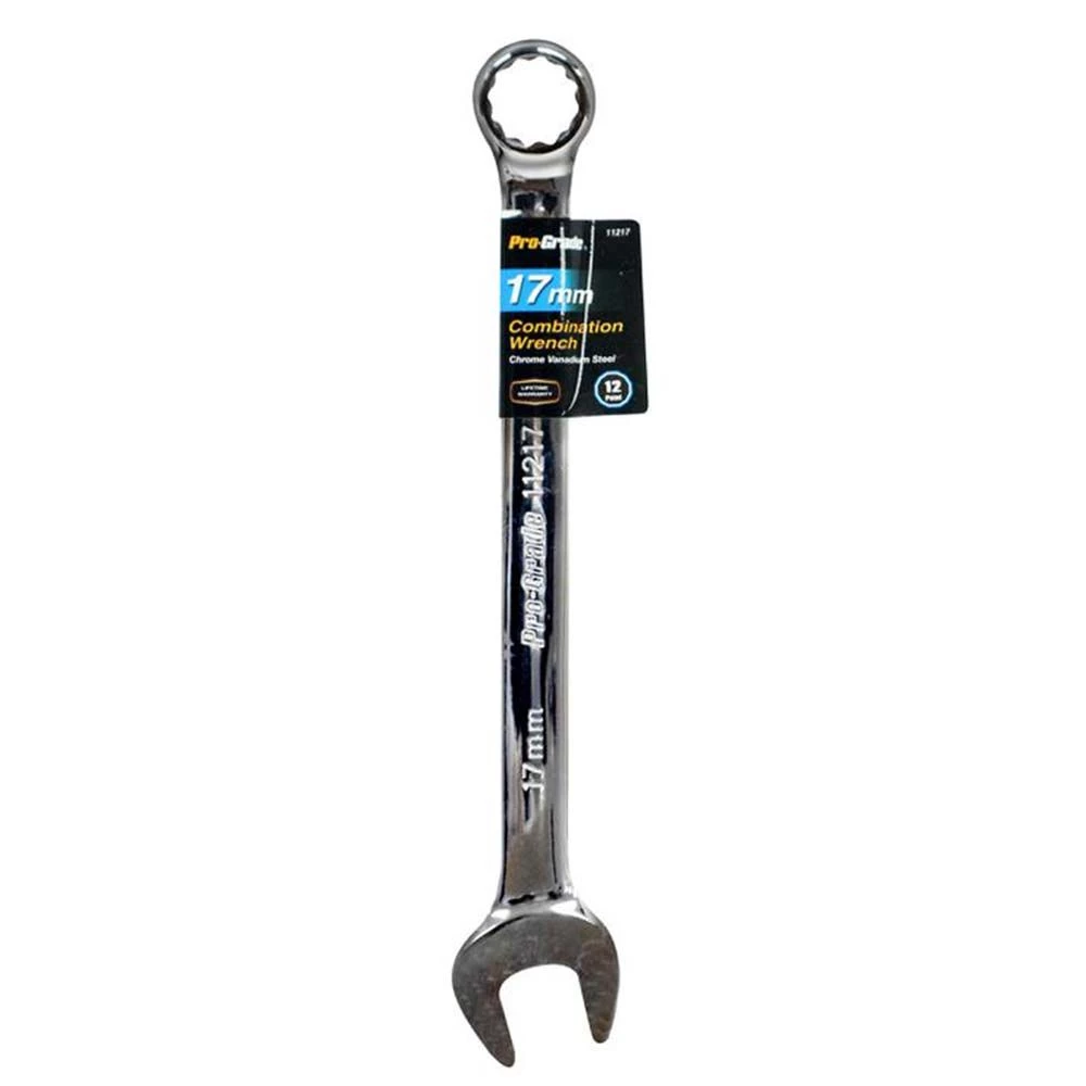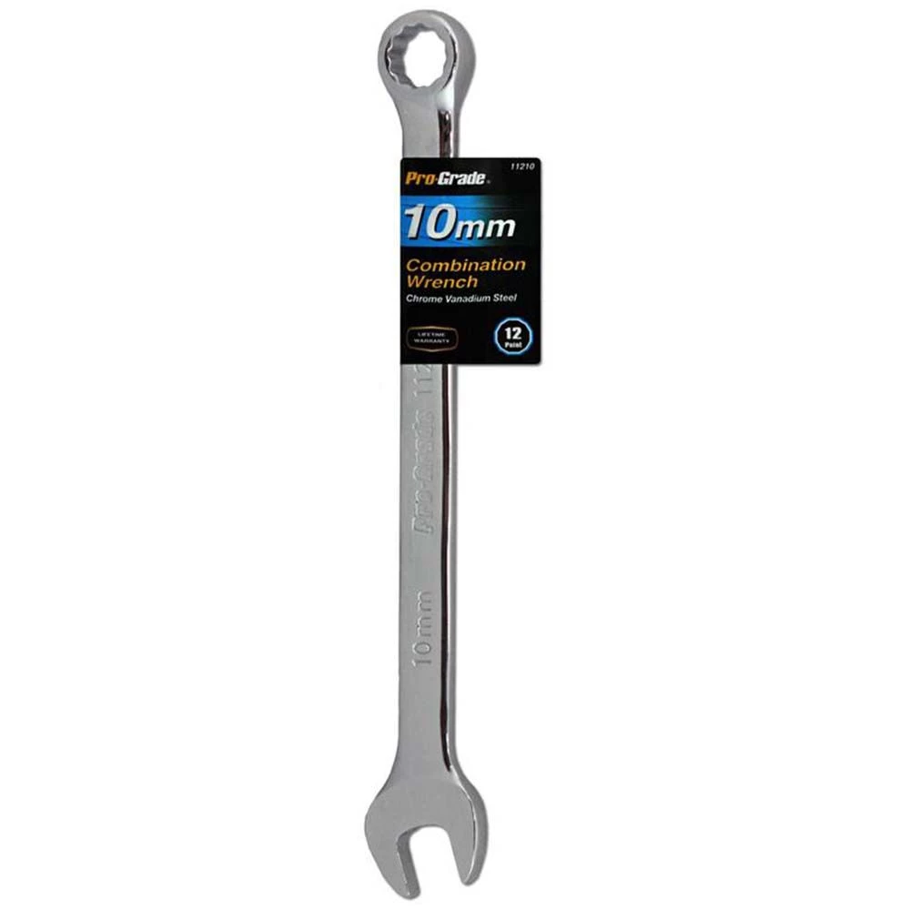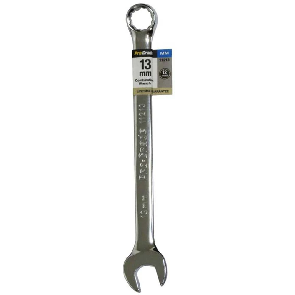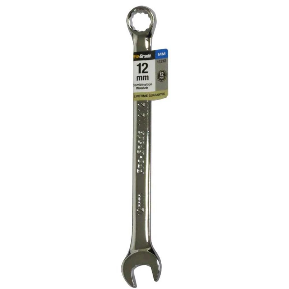 Pro-Grade Metric Combination Wrench is the perfect tool for your toolbox or automotive repair kit. It features an open face on one end and a circular grip on the other. It is made from drop forged, heat treated carbon steel with precision machined openings. This wrench is useful for carpentry jobs, household repairs, automotive repairs and for common tasks such as furniture assembly.