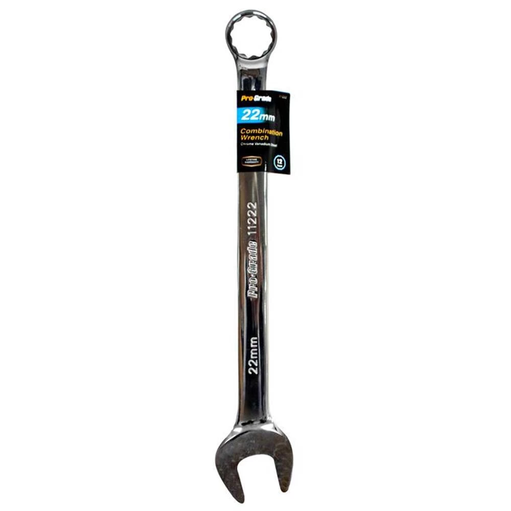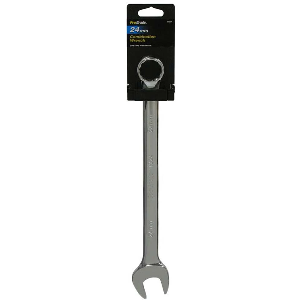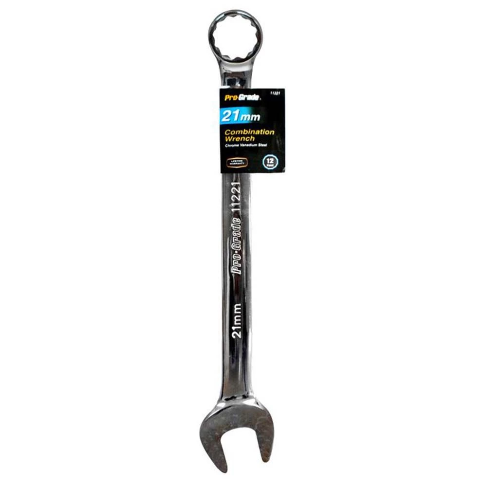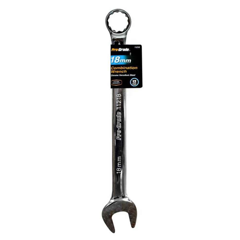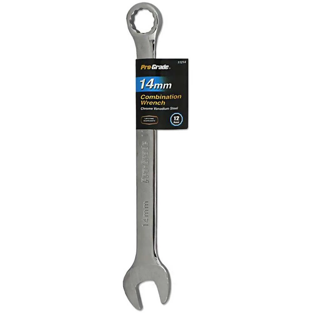 Pro-Grade Metric Combination Wrench is the perfect tool for your toolbox or automotive repair kit. It features an open face on one end and a circular grip on the other. It is made from drop forged, heat treated carbon steel with precision machined openings. This wrench is useful for carpentry jobs, household repairs, automotive repairs and for common tasks such as furniture assembly.