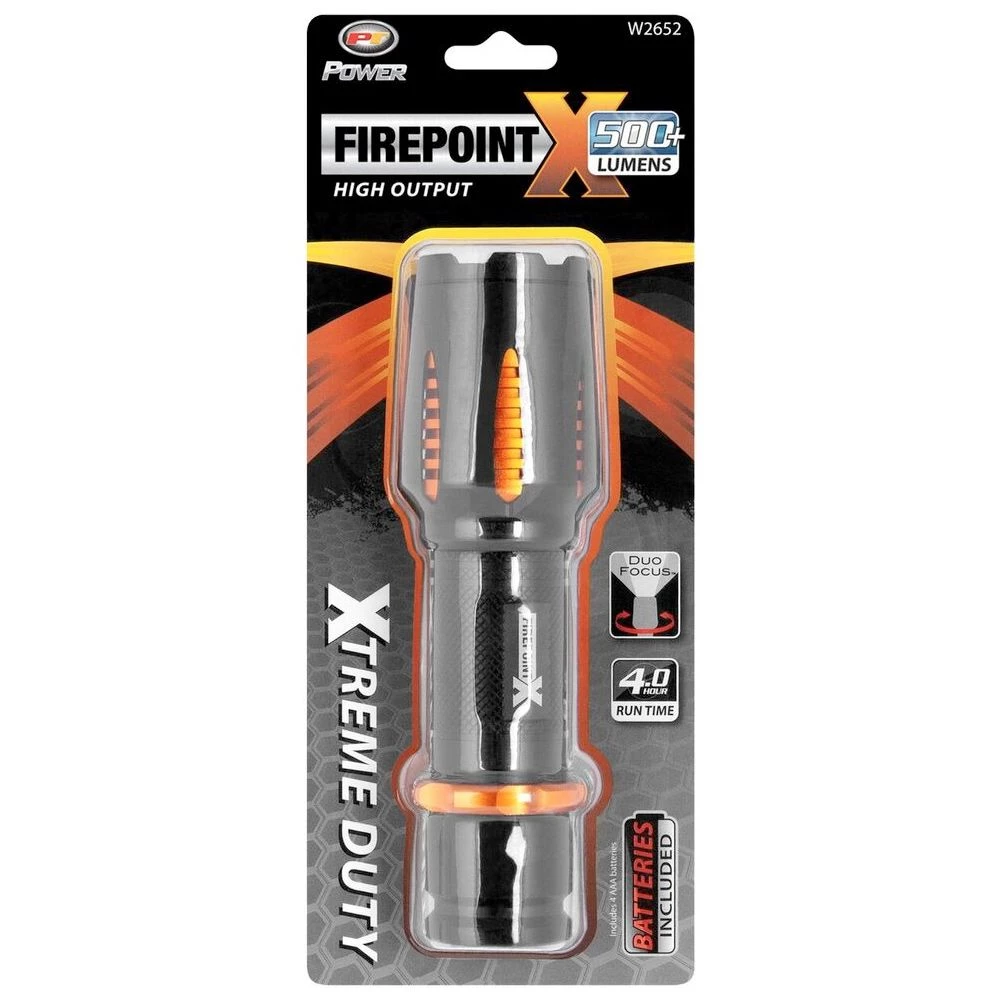 PT Power FirePoint X 4AAA Flashlight features an adjustable DuoFocus beam that goes from spot to flood and a Super Bright Cree LED that never needs replacing. This flashlight has an Anodized tactical aluminum housing. FirePoint X flashlights feature a heavy duty design with improved thermal efficiency resulting in up to 20% better performance than comparable flashlights.