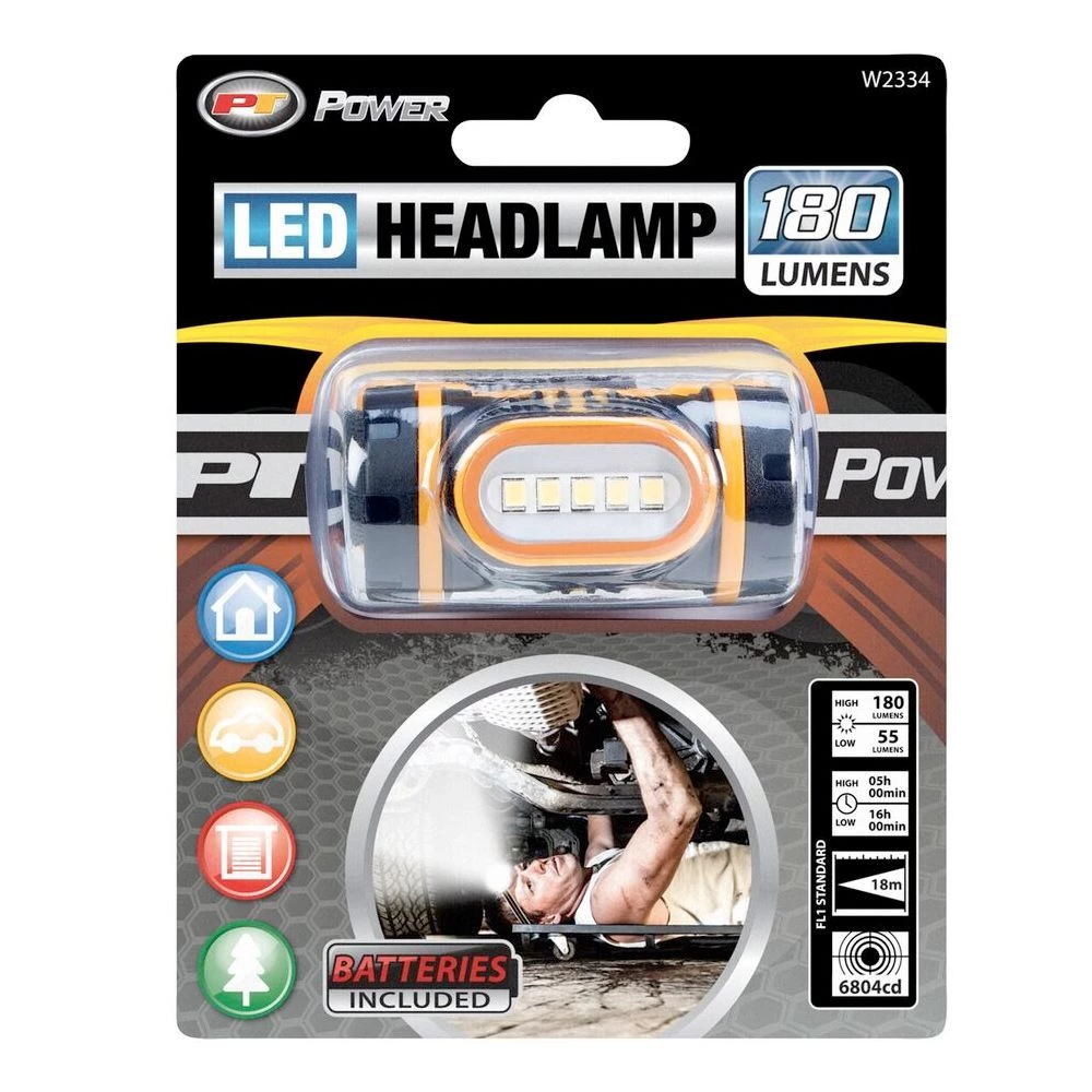 PT Power LED Headlamp features high output wide angel LEDs create a large flood of light. It is a low profile, comfortable and lightweight design with an adjustable head strap.