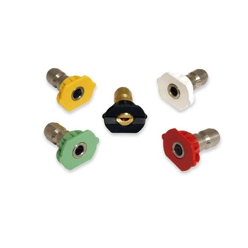 | Components and Accessories Included | One each: 0 degree (red), 15 degrees (yellow), 25 degrees (green), and 40 degrees (white), one brass 65 degree (black) low pressure soap/chemical tip |