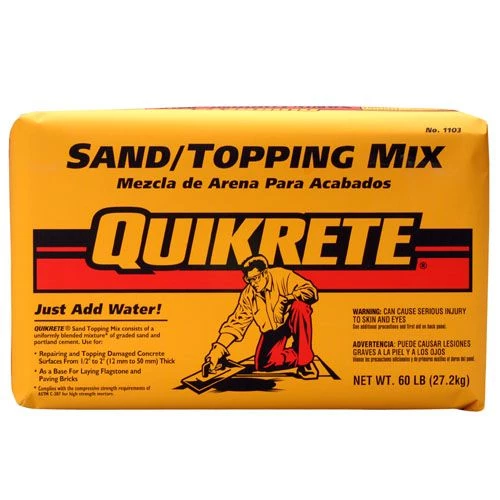 Quikrete Sand/Topping Mix 60 Lb. consists of a uniformly blended mixture of Portland cement and commercial grade sands, used for repairing and topping damaged concrete surfaces less than 2 in. (51 mm.) thick.