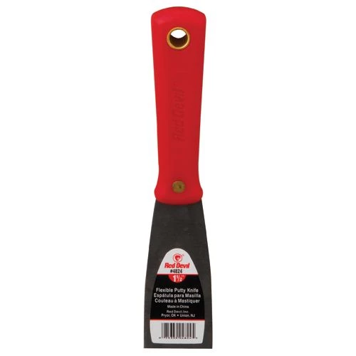 Red Devil Flex Putty Knife 1-1/2 In. is perfect for the do-it-yourselfer. It has a high-carbon steel blade that is rust-resistant and extends through the sturdy solvent-resistant handle for spreading or scraping strength and long life.