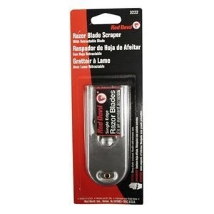 Red Devil Push/Pull Window Scraper has all metal construction with nickel plate brass eyelets. Push/pull action locks blade in place for use, retracts for safe storage. Uses standard razor blades.