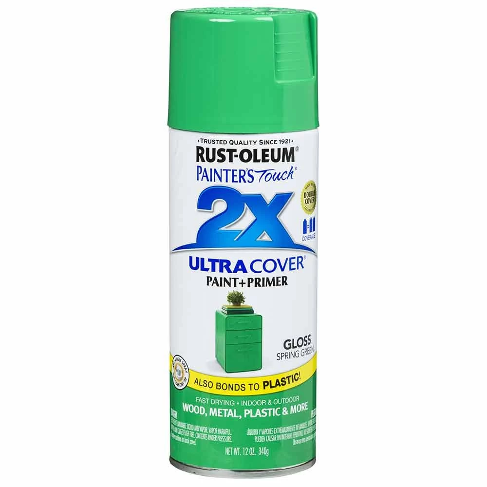 Rust-Oleum® Painter's Touch® 2X Ultra Cover® Gloss Spray Paint 12 Oz. delivers twice the coverage of competitive brands making your job easier and faster to complete. This spray paint adheres to a variety of surfaces like wood, plastic, metal and more. The can features an any-angle spray system for those hard-to-reach areas and a comfort spray tip to eliminate finger fatigue. There is less waste since fewer cans are needed, making it more sustainable.