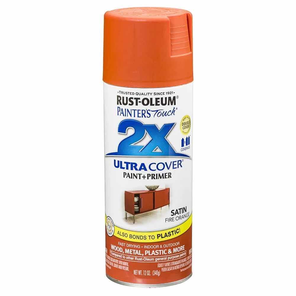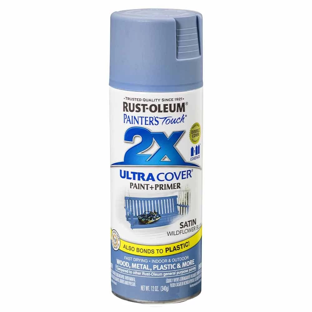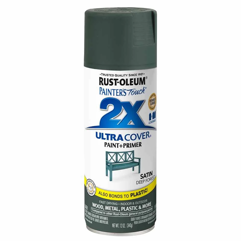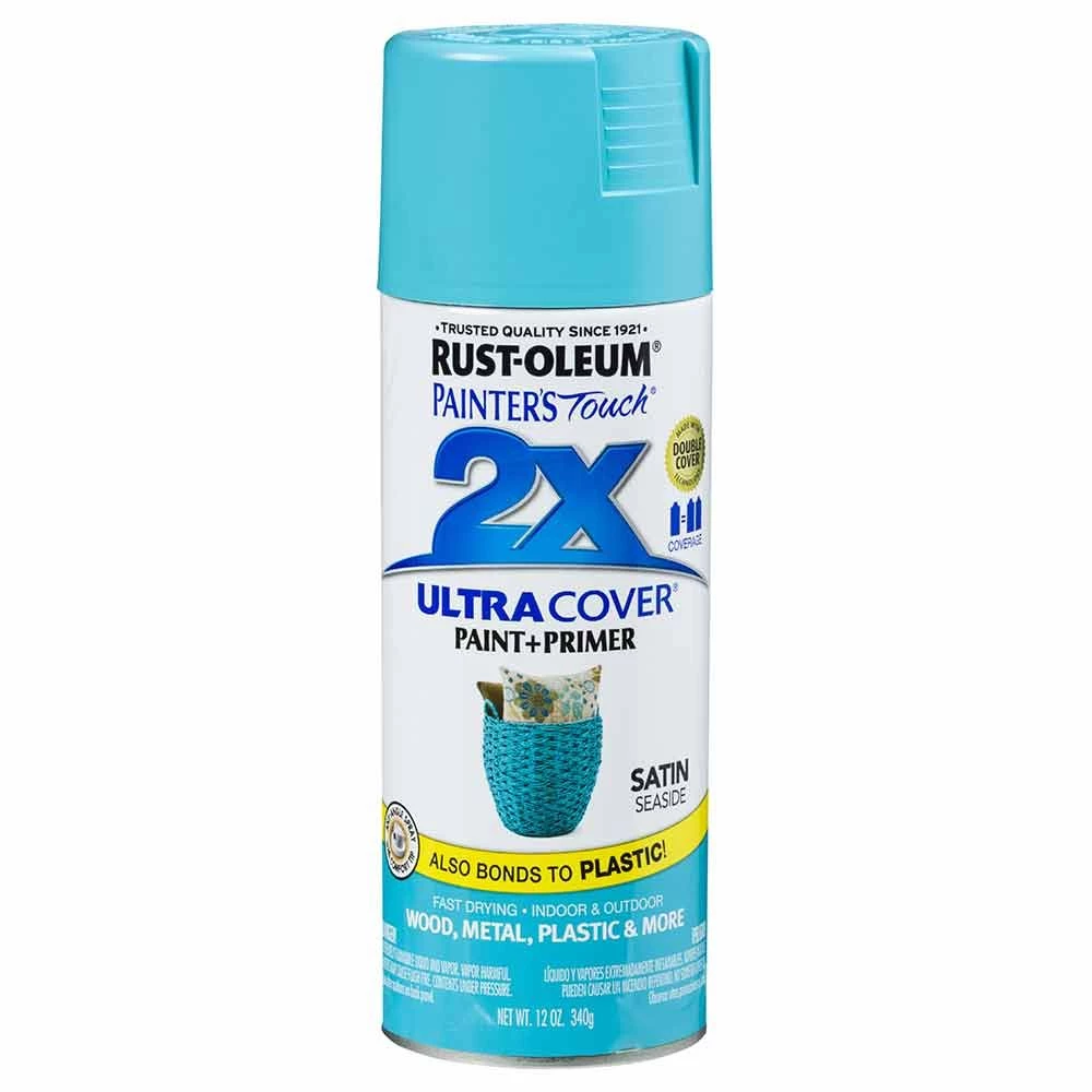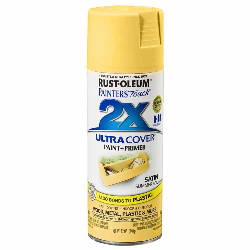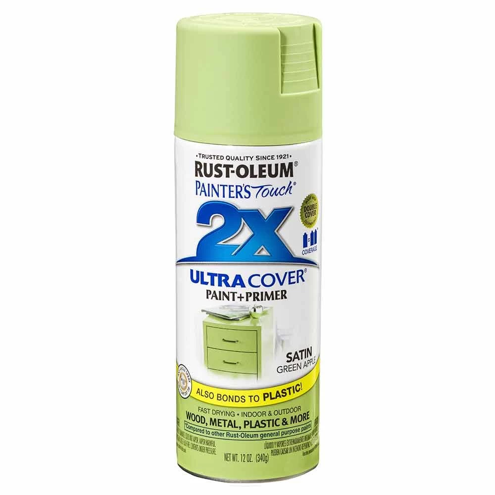 Rust-Oleum® Painter's Touch® 2X Ultra Cover® Satin Spray Paint 12 Oz. delivers twice the coverage of competitive brands making your job easier and faster to complete. It adheres to interior/exterior surfaces like wood, plastic, plaster, metal, masonry and unglazed ceramic. The can features an any-angle spray system for those hard-to-reach areas and a comfort spray tip to eliminate finger fatigue. The oil-based formula is low oder, resists chips and provides long-lasting protection.
