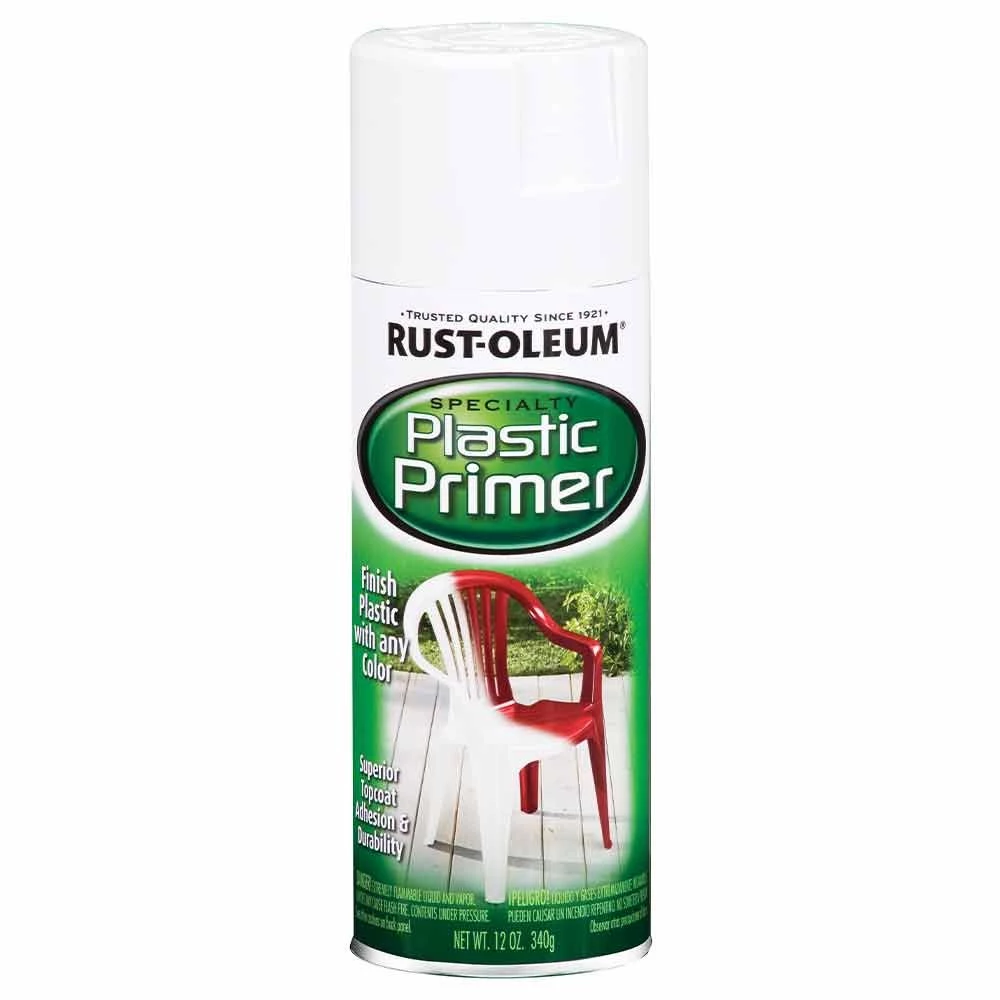 Rust-Oleum® Specialty Plastic Primer 12 Oz. prepares plastic for painting with any top coat. It can be applied directly to plastic mailboxes, lawn chairs, storage lockers and more. It adheres to hard-to-paint surfaces.