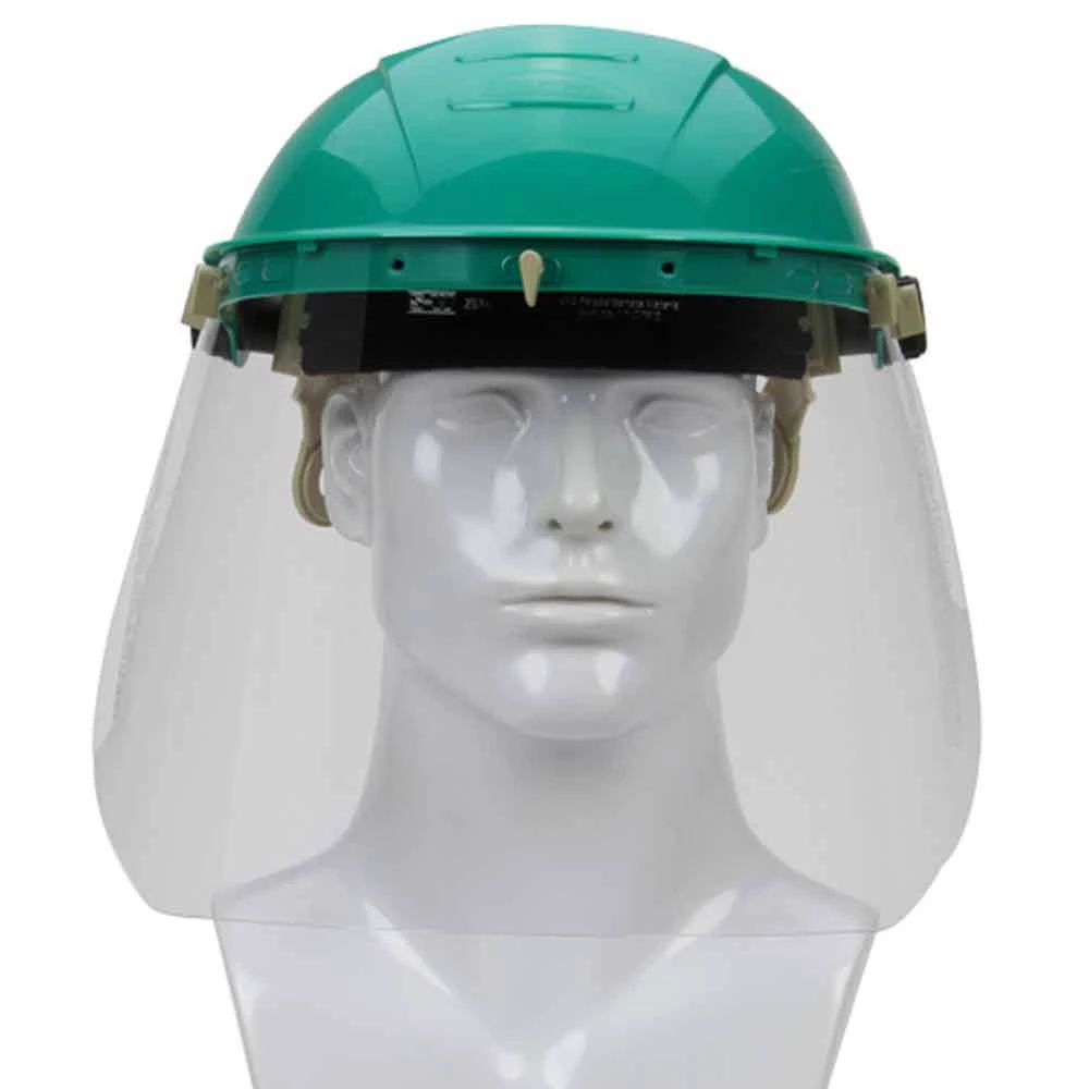 Safety Works Adjustable Headgear with Faceshield features a ratchet suspension for quick and easy adjustments. The visor attaches easily to the frame with cam locks.